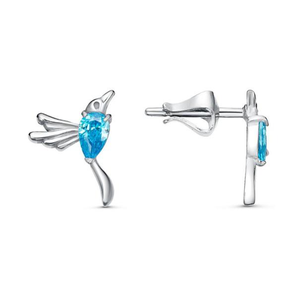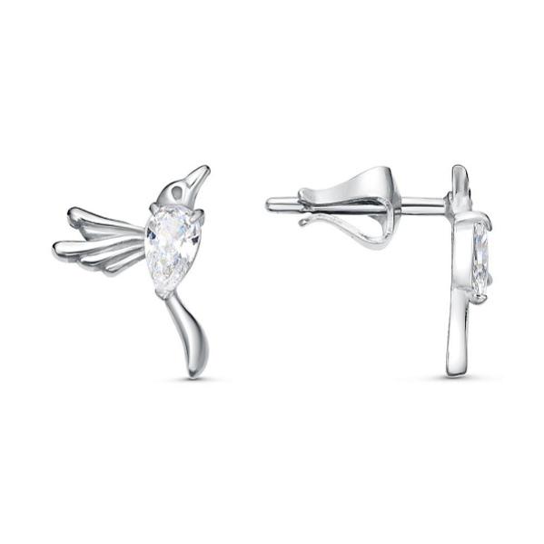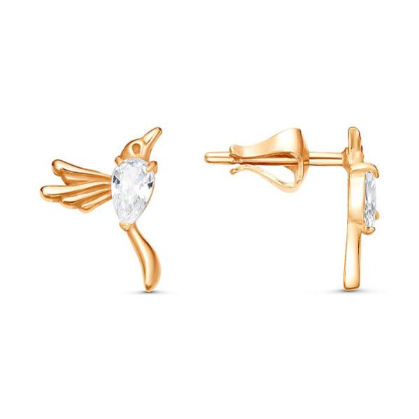 Серьги гвоздики Колибри из золоченого серебра с фианитами Код товара: 1617231
