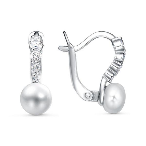 Серьги из серебра с жемчугом и фианитами Код товара: 1617086