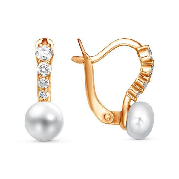 Серьги из золоченого серебра с жемчугом и фианитами Код товара: 1617087