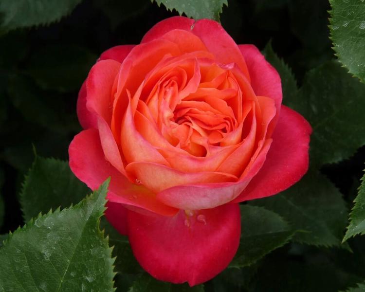 , известная также как роза-фонарик. Сияющий, алый цвет с оранжевыми нотками манит вас издалека, словно маленький фонарик, освещающий ваш сад.