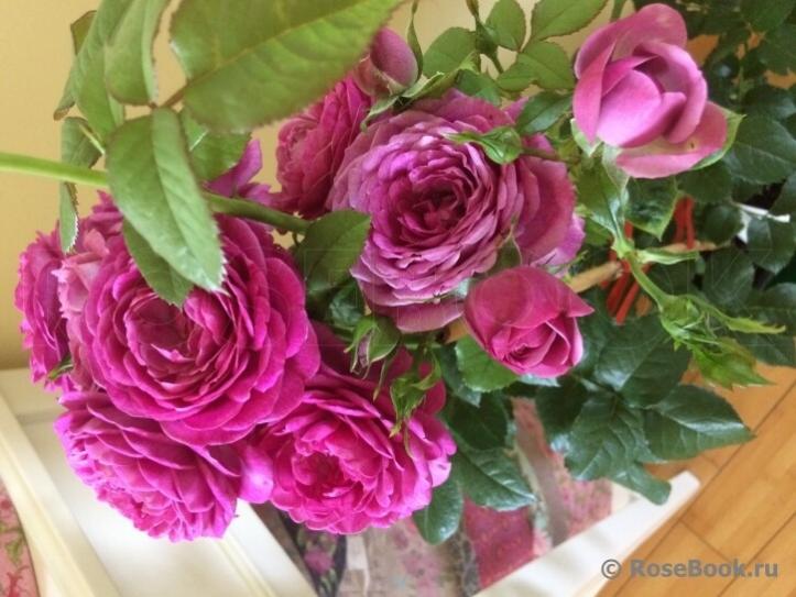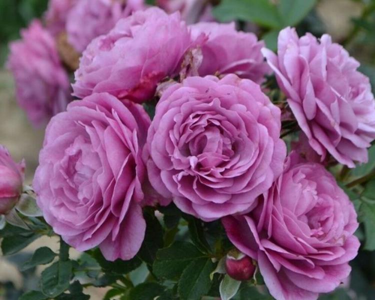 , сорта, который оживит ваш сад глубокими оттенками насыщенно-лилового цвета. Компактный куст этой розы украшен многочисленными глобулярными цветами, собранными в крупные соцветия, которые придают ему великолепный и пышный вид.