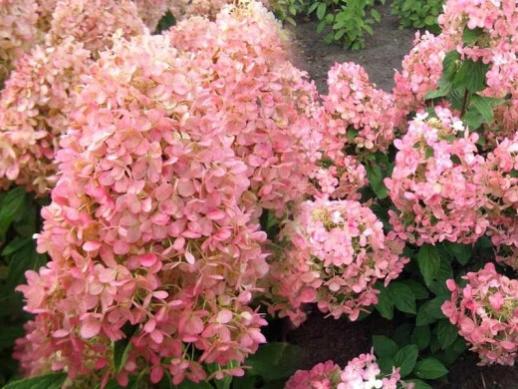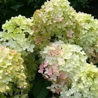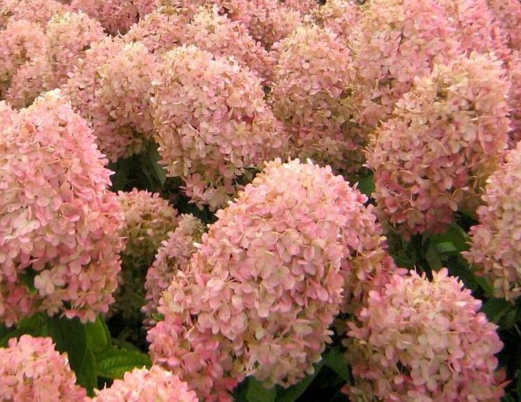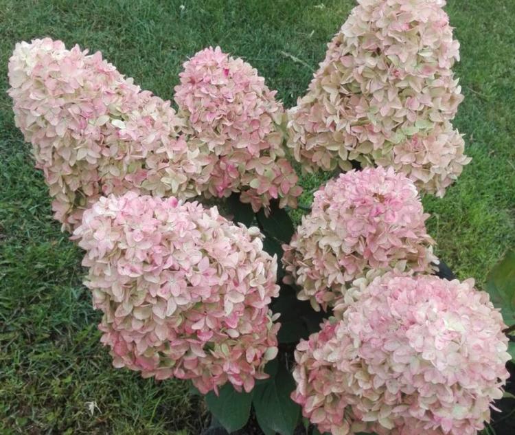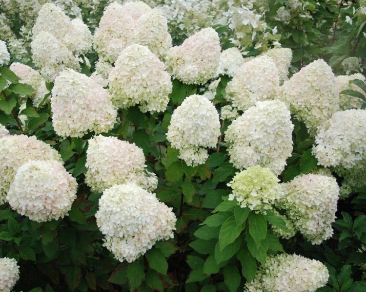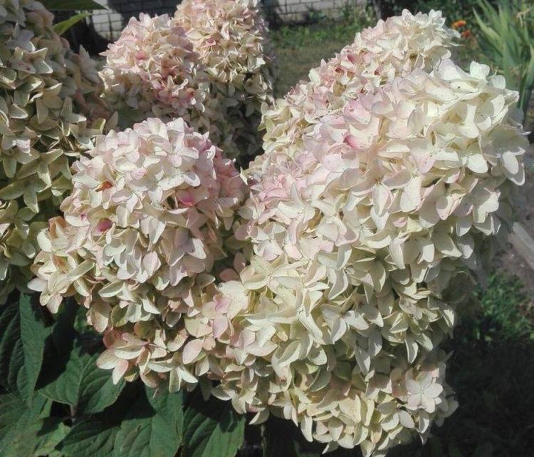 Соцветия: метёлки длиной 35–40 см (при хорошем уходе до 50 см), белые при роспуске, к осени приобретают сиреневато-розовый оттенок.