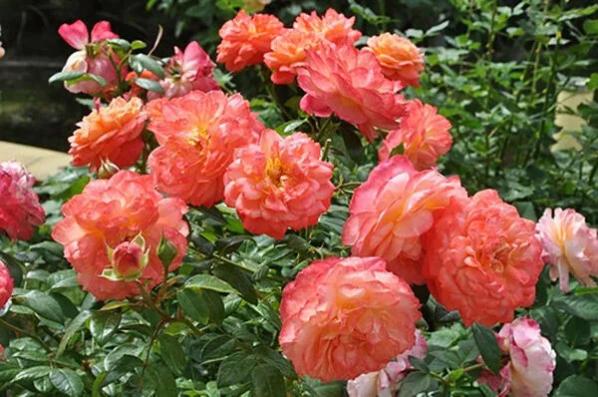 Роза Флорибунда Аптаун Гёл – впечатляющий сорт, обрадующий своими большими и красивыми кораллово-розовыми цветками с более насыщенным кораллово-оранжевым центром. Эти густомахровые цветки имеют более 41 лепесток и достигают диаметра 10-12 см, собраны в небольшие соцветия. Они придают кусту роскошный и элегантный вид.