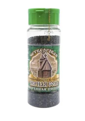 Черная соль поваренная пищевая салатная Четверговая, это натуральный, экологически чистый продукт без синтетических добавок, богатый микроэлементами. Черная соль приготовлена на основе обычной каменной соли с добавлением ржаной муки, по старинным рецептам Костромской области. При пережигании в печи длительное время при высокой температуре соль меняет свои свойства и становится продуктом с совершенно новыми качествами. Вследствие того, что черная соль запекается с ржаной мукой и затем просеивается, она становится рассыпчатой и мелкозернистой, меньше отсыревает.