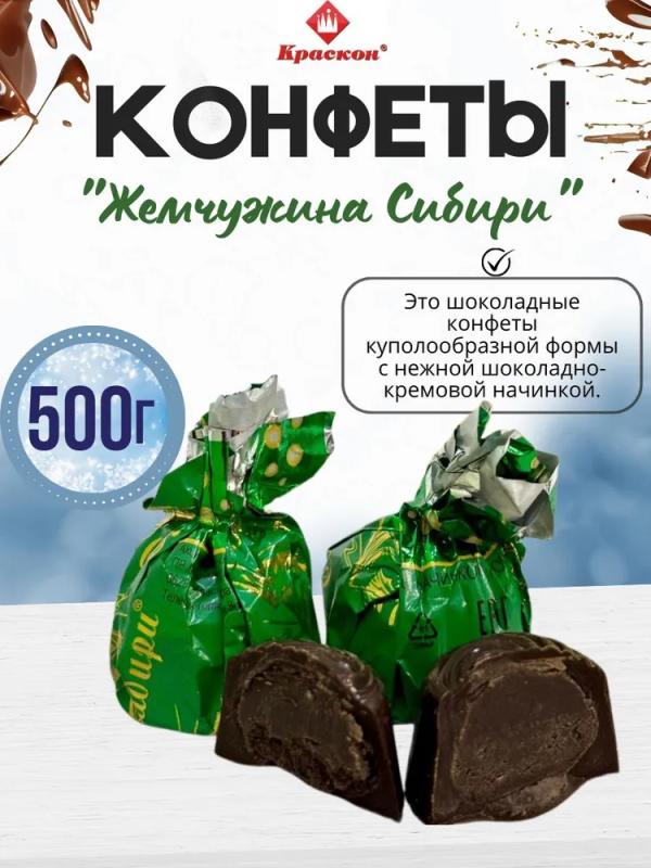 Это шоколадные конфеты куполообразной формы с нежной начинкой и кедровыми орешками на поверхности.