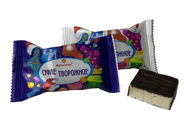 Глазированные шоколадной глазурью конфеты квадратной формы. Начинка конфет представлена сбитой белковой массой с добавлением натурального творожного порошка.