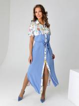 Длинное платье-рубашка прямого силуэта с цельнокроеными рукавами и разрезами по бокам. Застежка - на петли и пуговицы. Воротник рубашечного типа, на стойке. Карманы расположены в боковых швах. Линию талии подчеркивает пояс. Модное яркое платье-рубашка позволит Вам превосходно выглядеть как на прогулке, на отдыхе, так и в офисе. Платье отлично сочетается с туфлями, сандалиями и легкой спортивной обувью.
