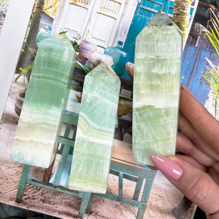 Кристалл из фисташкового Кальцита, 3х11 см, Перу