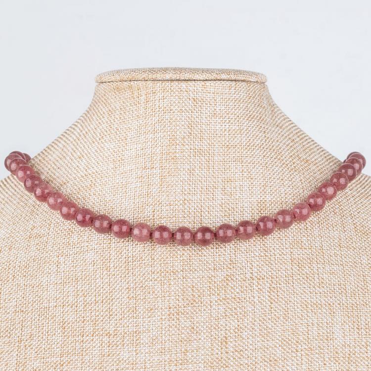 Колье из Кварца клубничного, 46 см +, 8,5 мм, гладкий