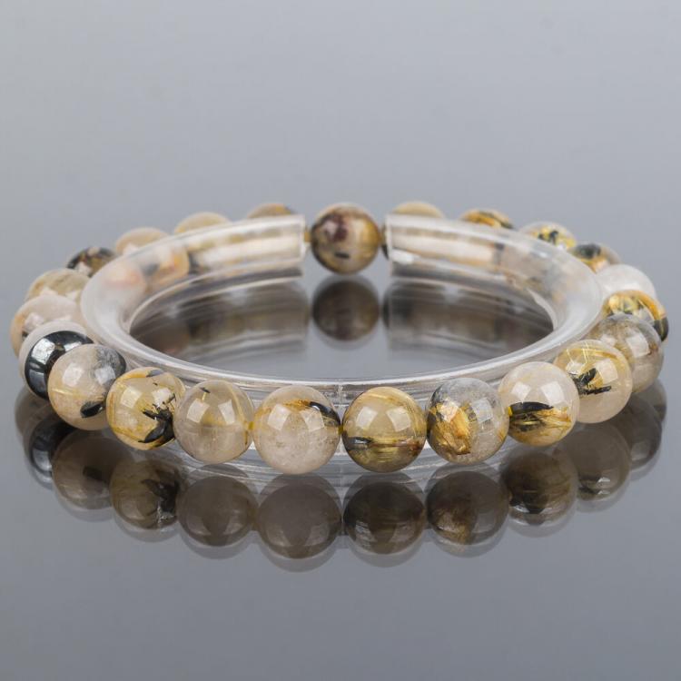 Браслет из Рутилового кварца с включением Титана, 17,5 см, 8-8,5 мм, гладкий, Бразилия