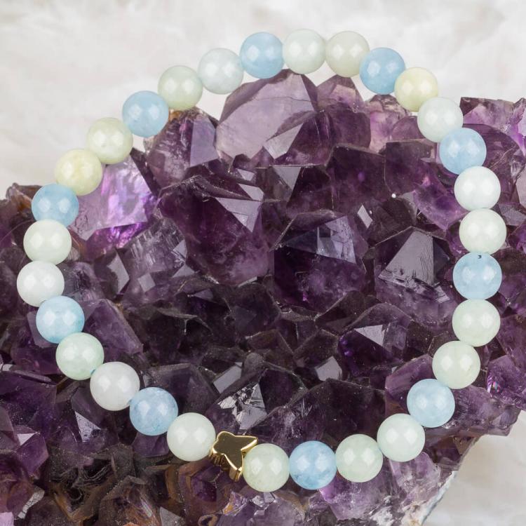 Браслет "Бабочка" из Берилла и Аквамарина, 16 см – 18 см, 6 мм, гладкий, Бразилия