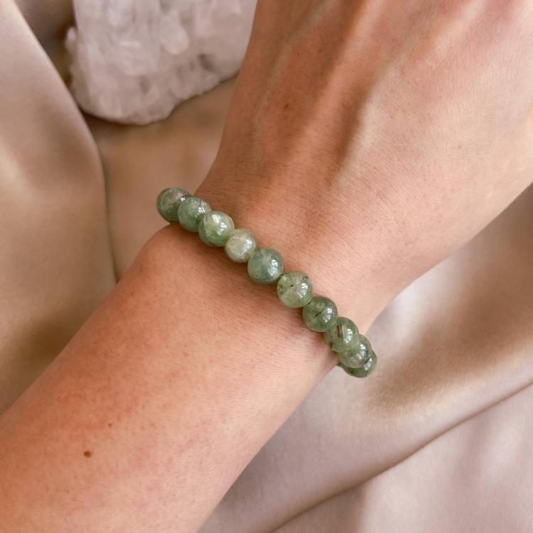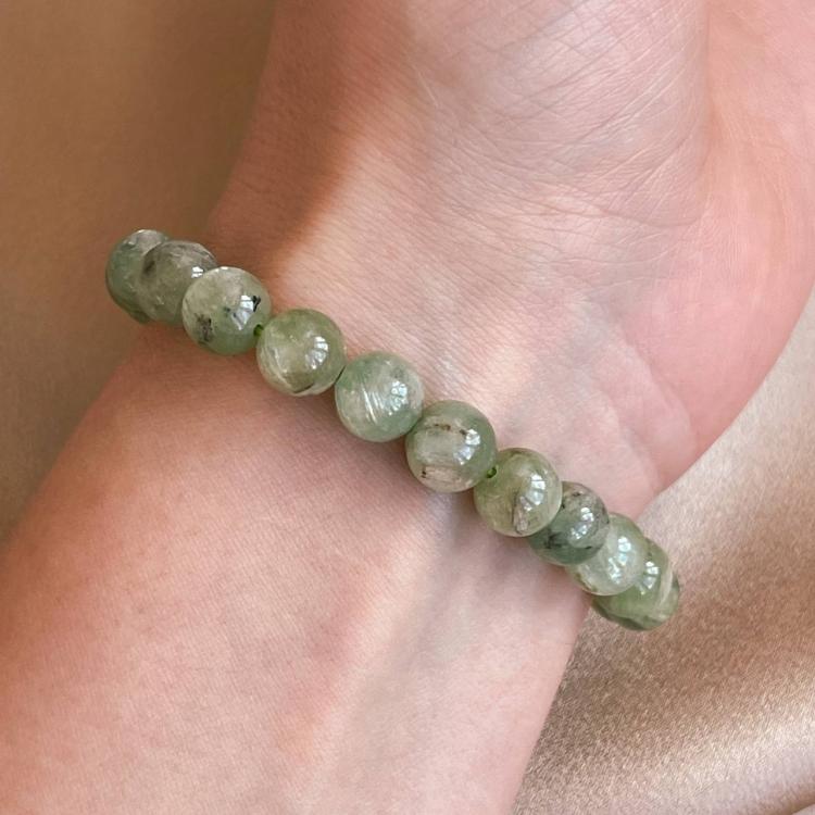 Браслет из Кианита зеленого, 17,5 см, 8 мм, гладкий, Индия
