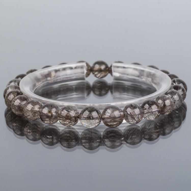 Браслет из Рутилового кварца, 17,5 см, 7-7,5 мм, гладкий, Бразилия
