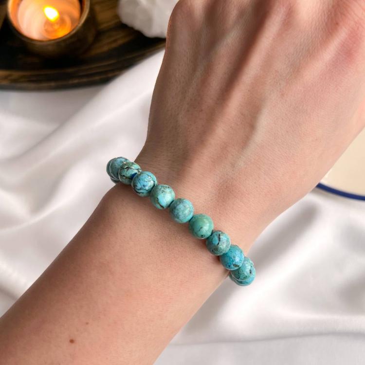 Браслет из Хризоколлы, 18 см, 8,5 мм, гладкий, Африка