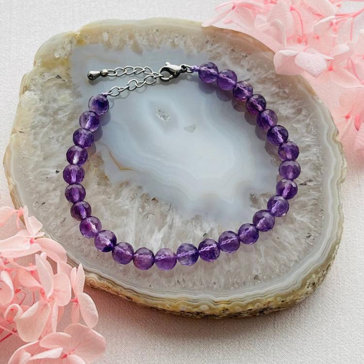 Браслет из Аметиста огранка, 16,5 см + – 17,5 см +, 5,5 мм, граненый, Бразилия