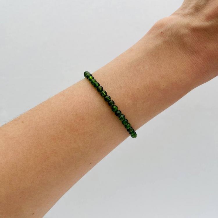 Браслет из Хромдиопсида, 17,5 см +, 4 мм, гладкий, Россия