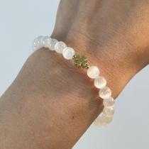 Браслет со вставкой "Клевер" из Селенита, 16 см – 18 см, 6 мм, гладкий, Марокко