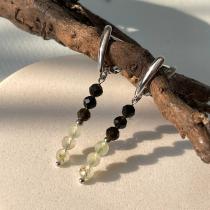 Серьги из Пренита и Обсидиана, 4 мм, граненый, английский замок, Африка