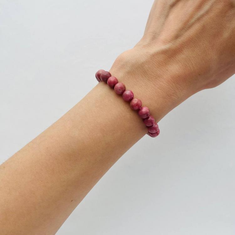 Браслет из Родонита, 17 см, 7 мм, гладкий, США
