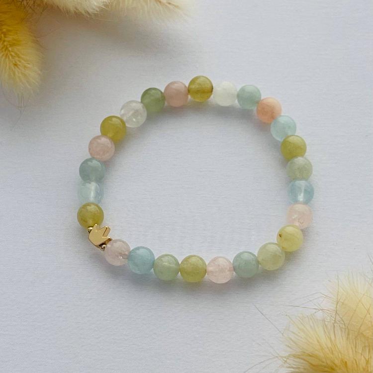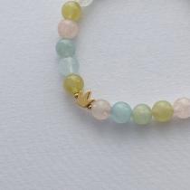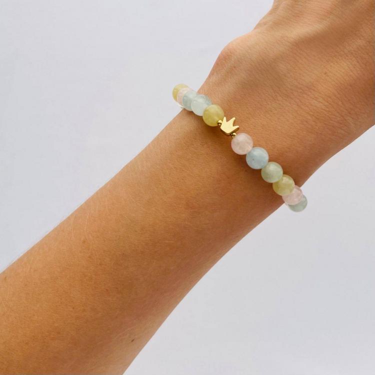Браслет из Берилла микс со вставкой "Корона", 14 см – 16 см, 6,5 мм, гладкий, Бразилия