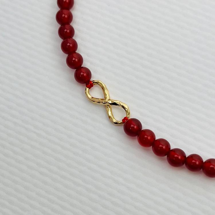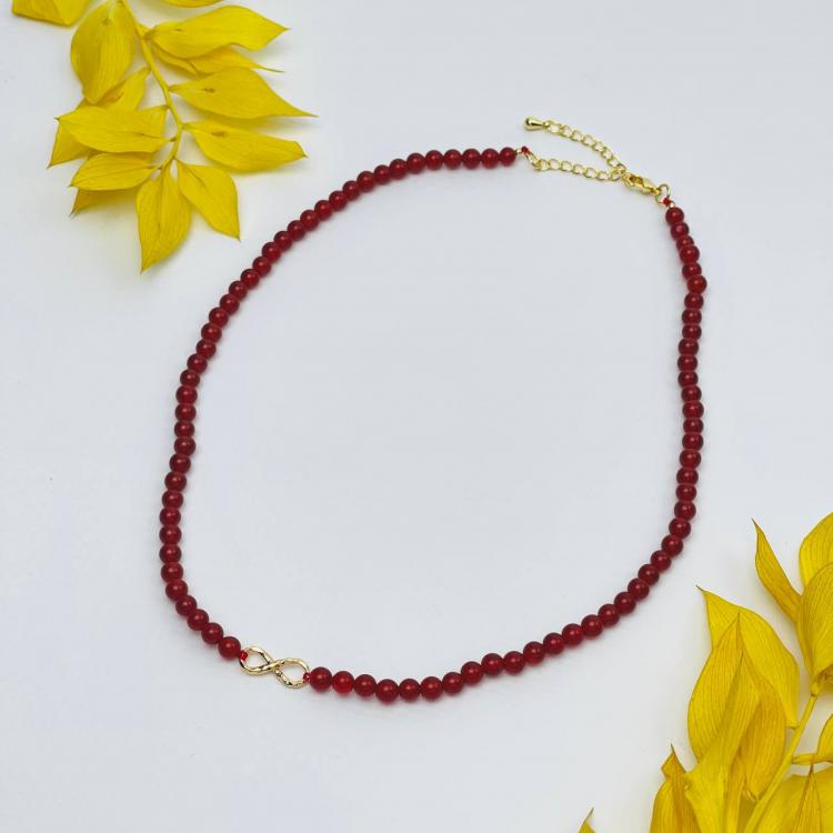 Бусы из Сердолика со вставкой "Бесконечность", 38 см + – 42 см +, 4,5 мм, гладкий, Африка