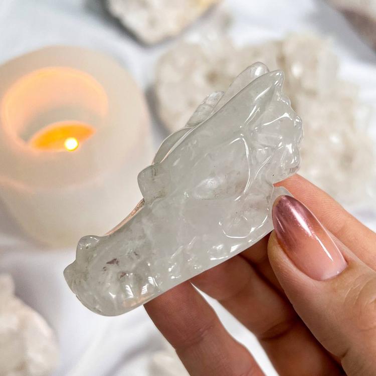 Фигурка резная "Дракон" из молочного Кварца, 35х65 мм, Бразилия