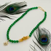 Колье из зеленого Кварца и Цитрина с подвеской "Солнце", 46 см +, 8 мм, граненый, Бразилия