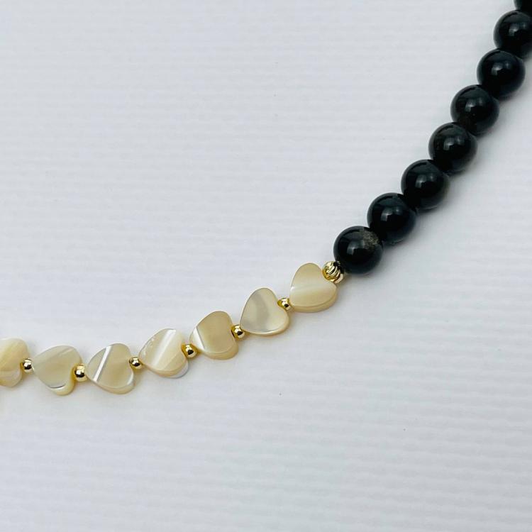 Колье из золотистого Обсидиана,Перламутра и Цитрина, 40 см + – 45 см +, 6 мм, гладкий, Мексика