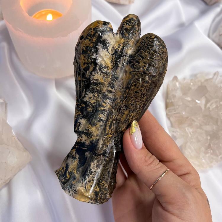 Статуэтка "Дева Мария" из дендритовой Яшмы, 7х15 см, Африка