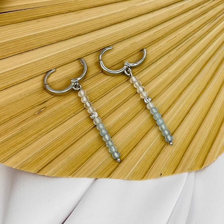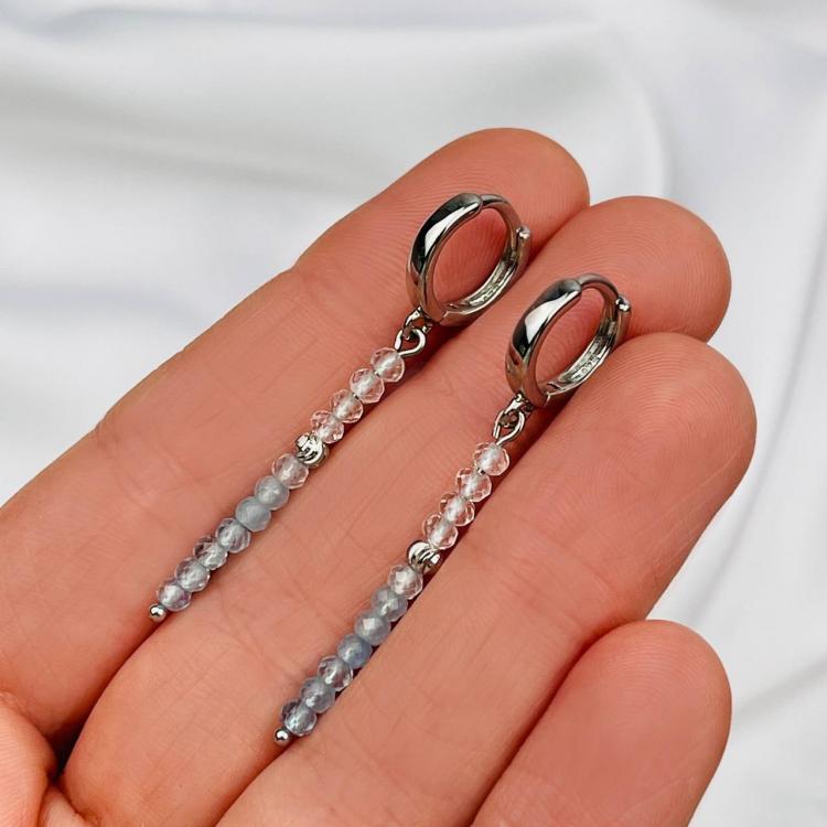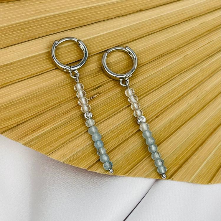 Серьги длинные из Аквамарина и Горного Хрусталя, граненый, кольцевой замок, Бразилия