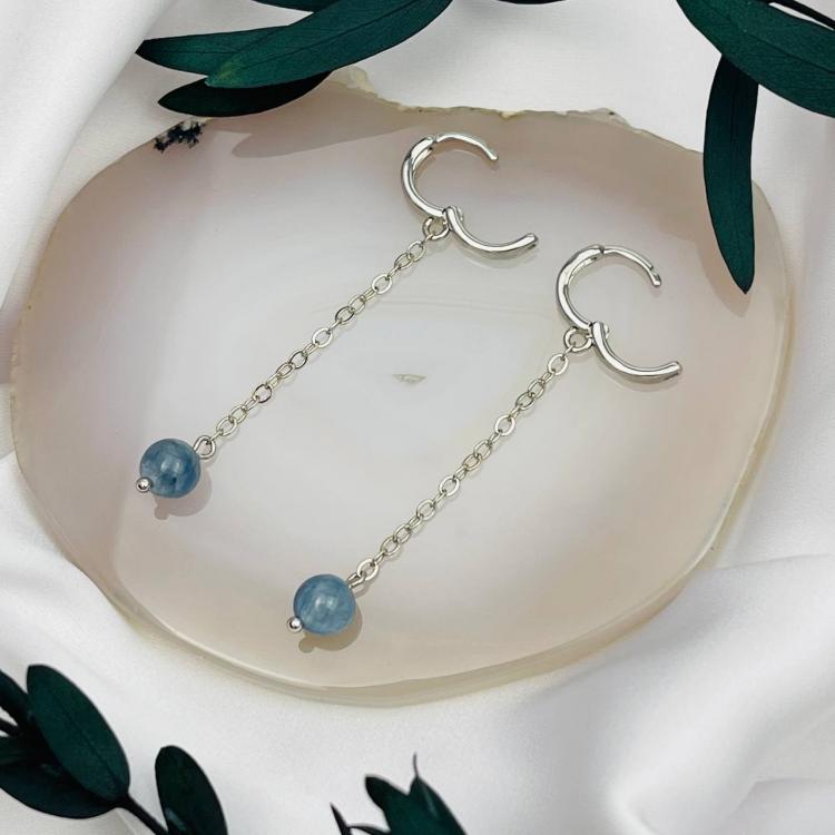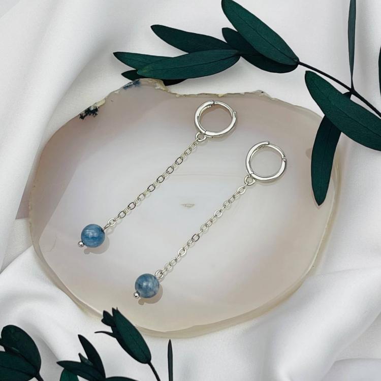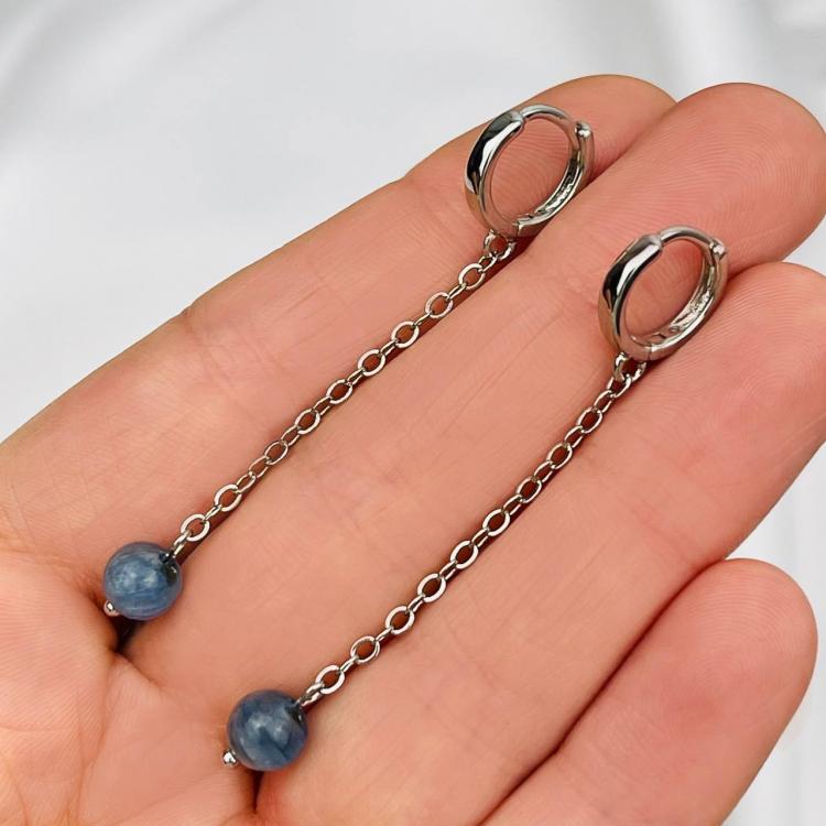 Серьги на цепочке с Кианитом, 6,5 мм, гладкий, кольцевой замок, Бразилия