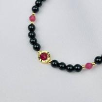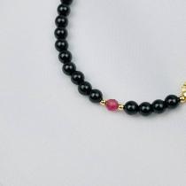 Браслет из черного "Шерл" и розового Турмалина, 16,5 см + – 18 см +, 3,5-4 мм, гладкий/Граненый, Бразилия