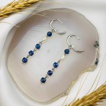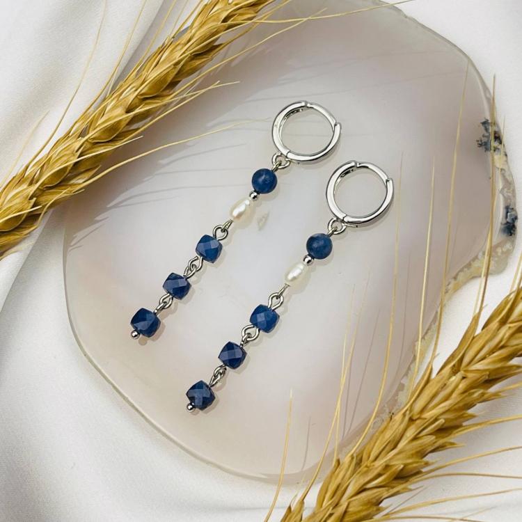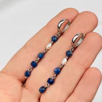 Серьги длинные из Содалита и Жемчуга, 3-4 мм, гладкий/Граненый, кольцевой замок, Бразилия