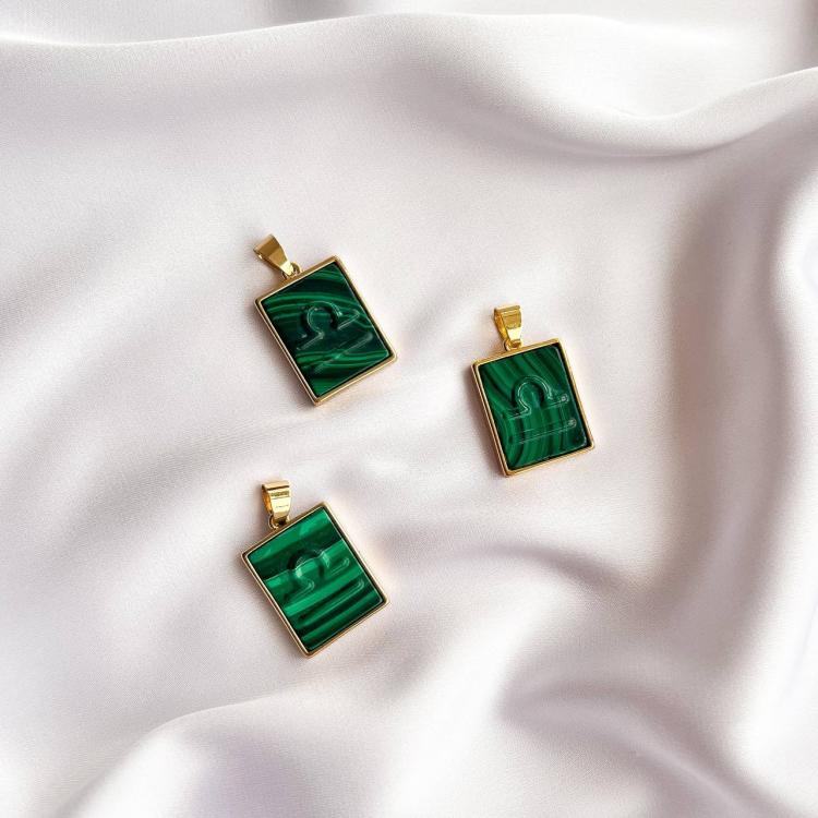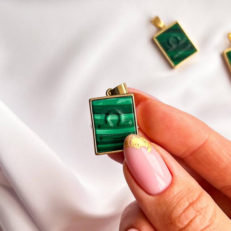 Кулон со знаком зодиака "Весы" из Малахита, 15х20 мм, золото 14К, Африка
