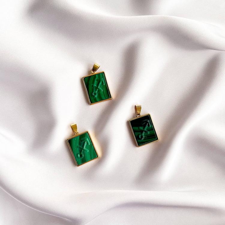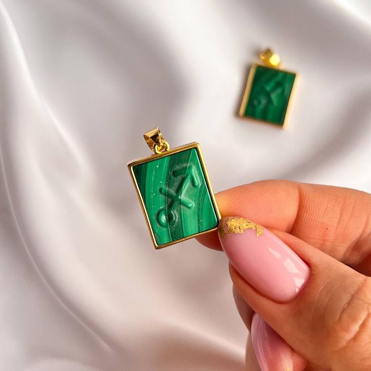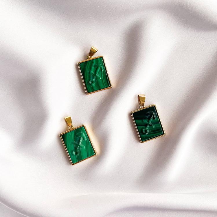 Кулон со знаком зодиака "Стрелец" из Малахита, 15х20 мм, золото 14К, Африка
