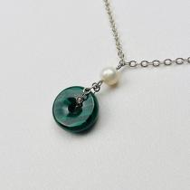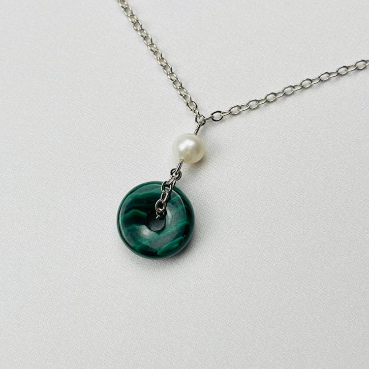 Колье на цепочке с Малахитом и Жемчугом, 45 см +, 6 мм, гладкий, Африка