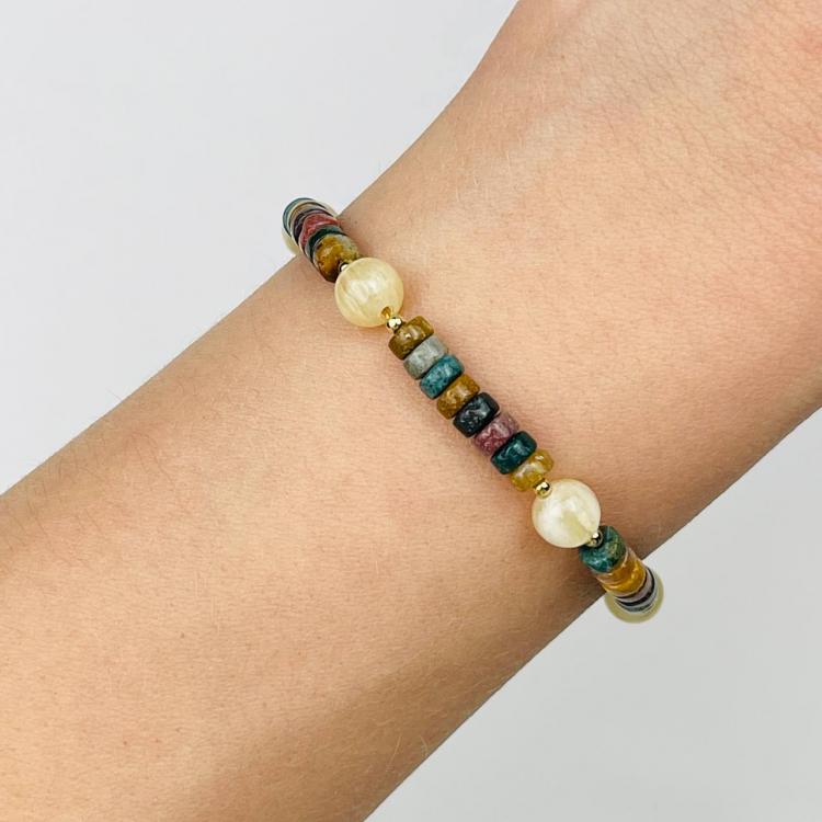 Браслет из океанической Яшмы и Селенита, 17,5 см + – 19 см +, 6,5 мм, гладкий, Мадагаскар