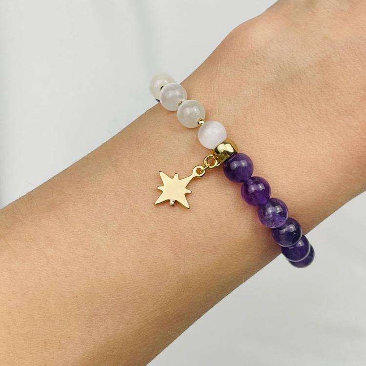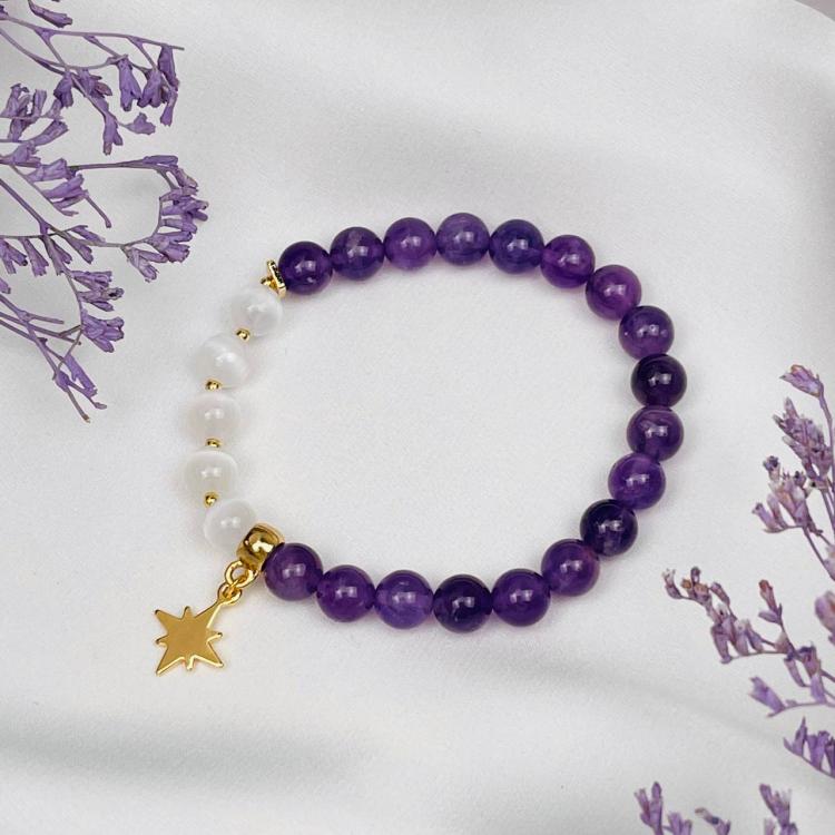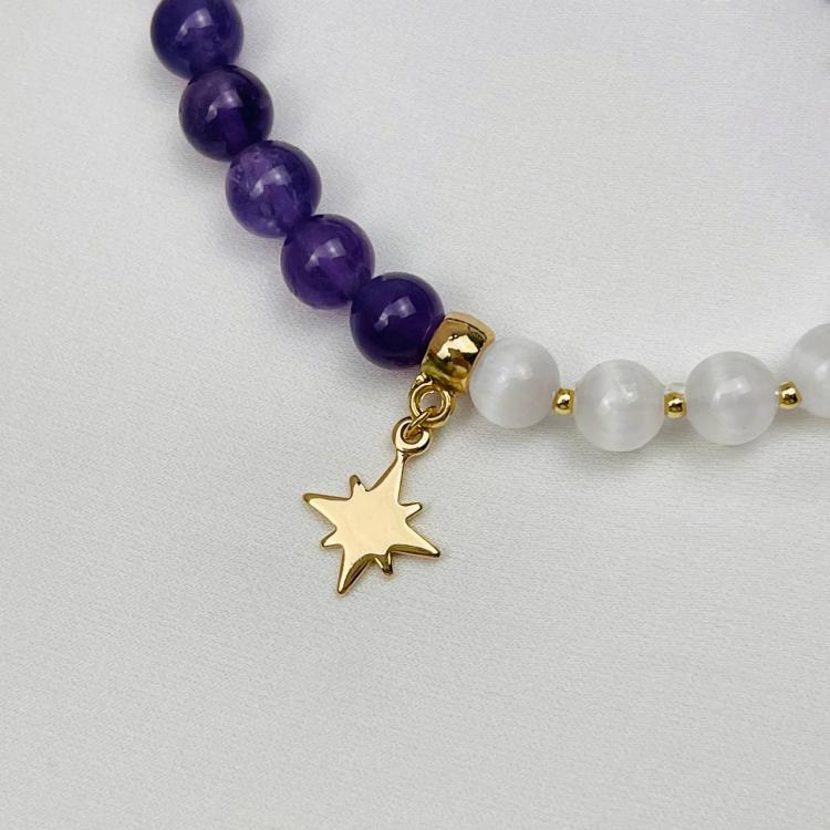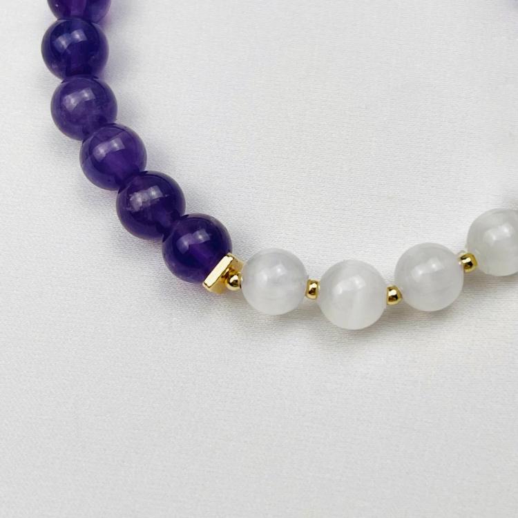 Браслет из Аметиста и Селенита с подвеской, 16 см, 6,5-7 мм, гладкий, Бразилия