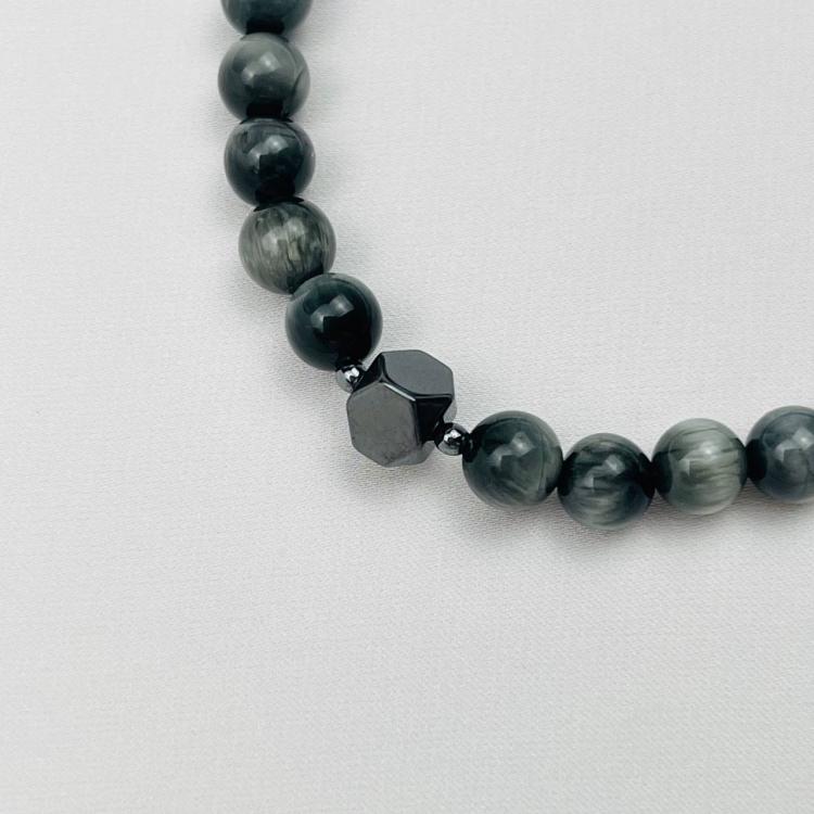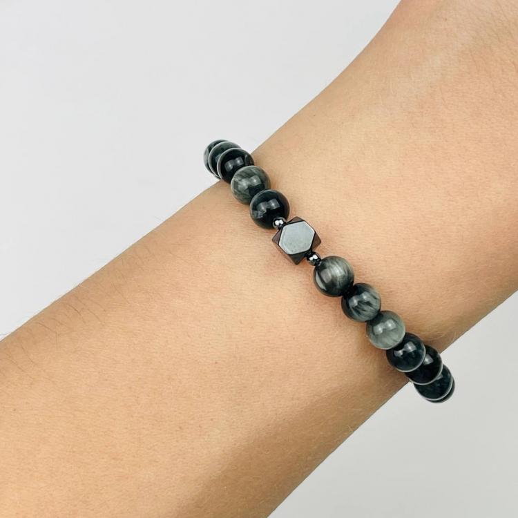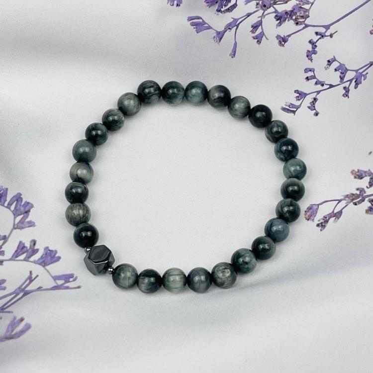 Браслет из Соколиного глаза и Гематита, 17 см – 20 см, 6 мм, гладкий, Бразилия