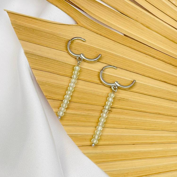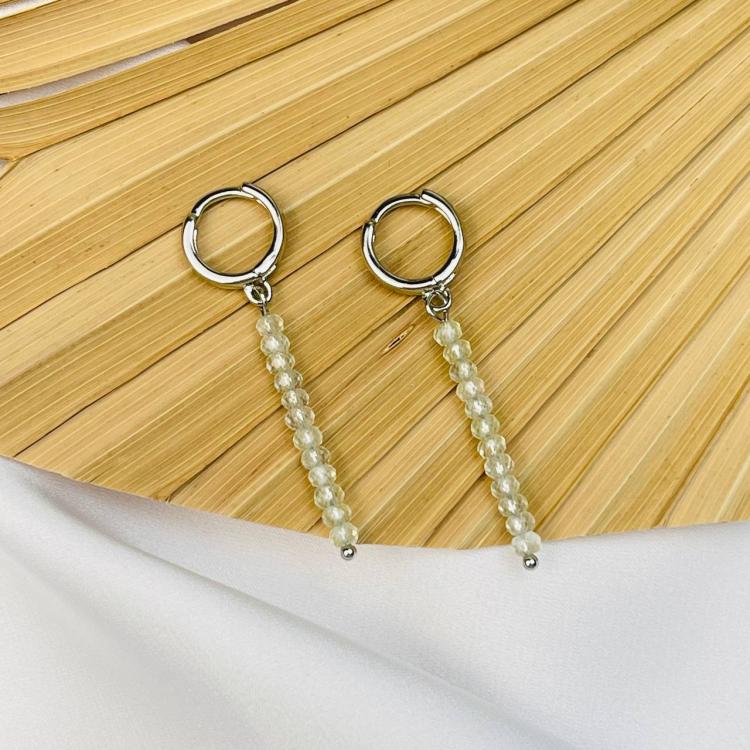 Серьги длинные с камнем Пренит, граненый, кольцевой замок, Африка