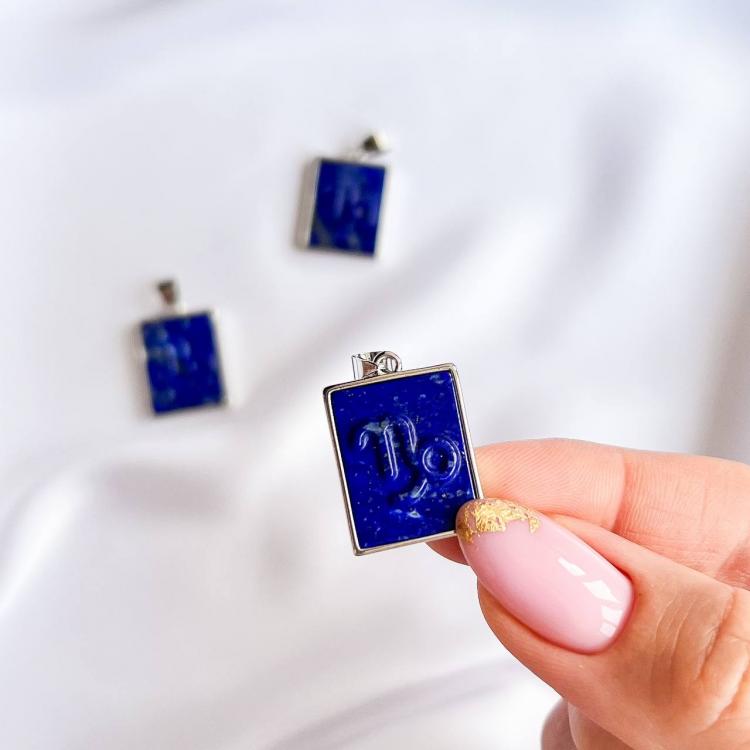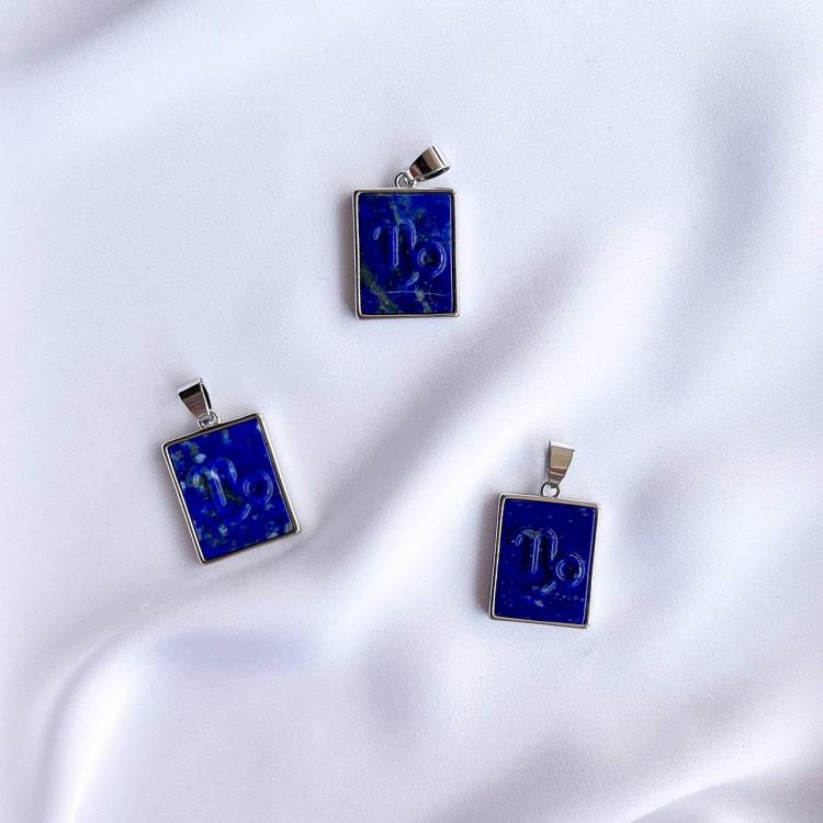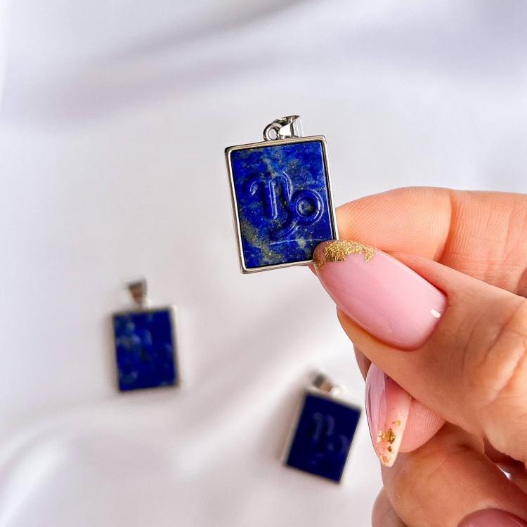 Кулон со знаком зодиака "Козерога" из Лазурита, 15х20 мм, бижутерный сплав, Афганистан