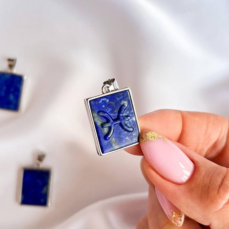 Кулон со знаком зодиака "Рыбы" из Лазурита, 15х20 мм, бижутерный сплав, Афганистан