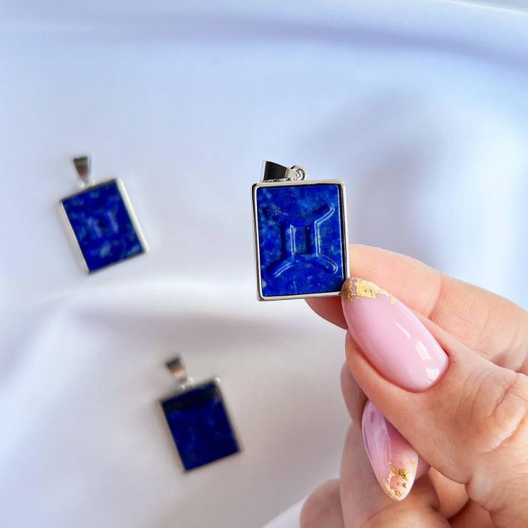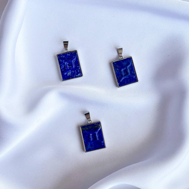 Кулон со знаком зодиака "Близнецы" из Лазурита, 15х20 мм, бижутерный сплав, Афганистан