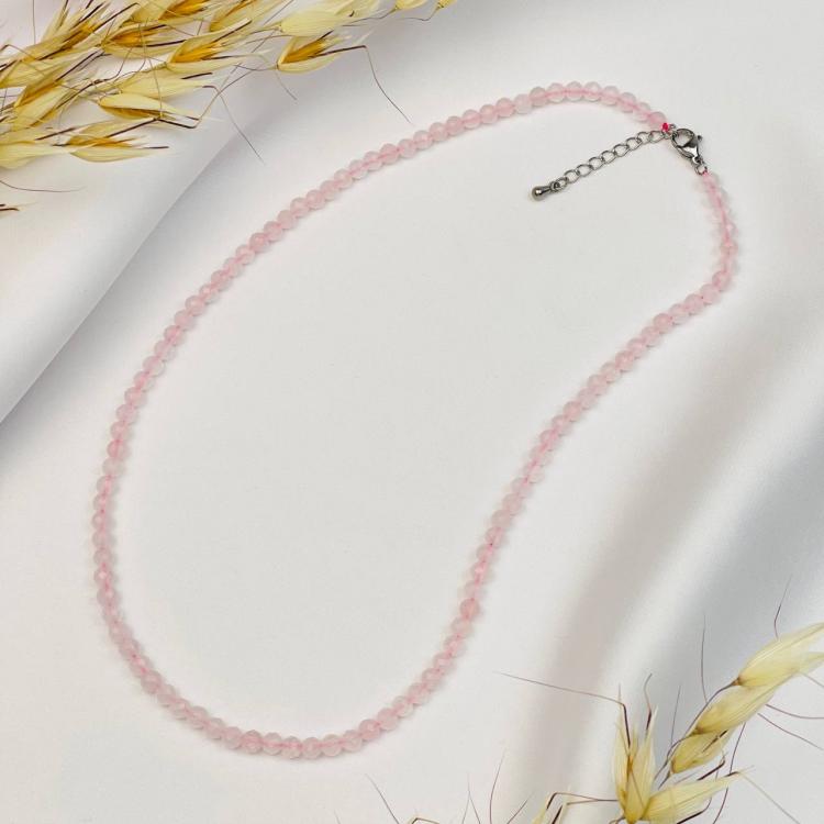 Бусы из Розового кварца, 42 см + – 45 см +, 4 мм, граненый, Бразилия