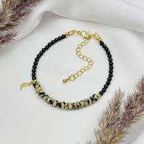 Браслет из черного Агата и Яшмы с подвеской "Месяц", 18 см +, 3 мм, гладкий, Бразилия