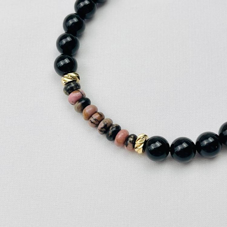 Браслет из черного Турмалина "Шерл" и Родонита, 17 см + – 18 см +, 6 мм, гладкий, Бразилия