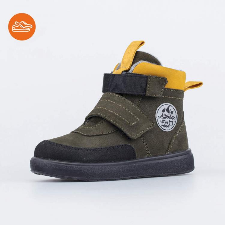Демисезонные ботинки для мальчика, выполненные в модном цвете хаки, обеспечивают комфорт в холодную осеннюю и весеннюю погоду. Верх детских ботинок выполнен из гипоаллергенной и дышащей натуральной кожи-нубука и украшен светоотражающей нашивкой с надписью «Приключения – моя натура». Носочная часть защищена от влаги и повреждений накладкой с ПУ-напылением. Подкладка из шерстяной байки и войлочная стелька надежно сохраняют тепло, отводят от стоп влагу и обеспечивают здоровый микроклимат внутри детской обуви. Стелька имеет петельку, чтобы легко вынимать ее для проветривания. Ботинки на липучках надежно фиксируются на ножках. Ребенку удобно обуваться и разуваться. Модная кедовая подошва из полиуретана амортизирует и сохраняет демисезонную обувь легкой. Модель имеет анатомически-правильную форму следа, а стелька из войлока приформовывается к стопе, создавая индивидуальную анатомическую форму внутреннего пространства в обуви. Сделано в России.