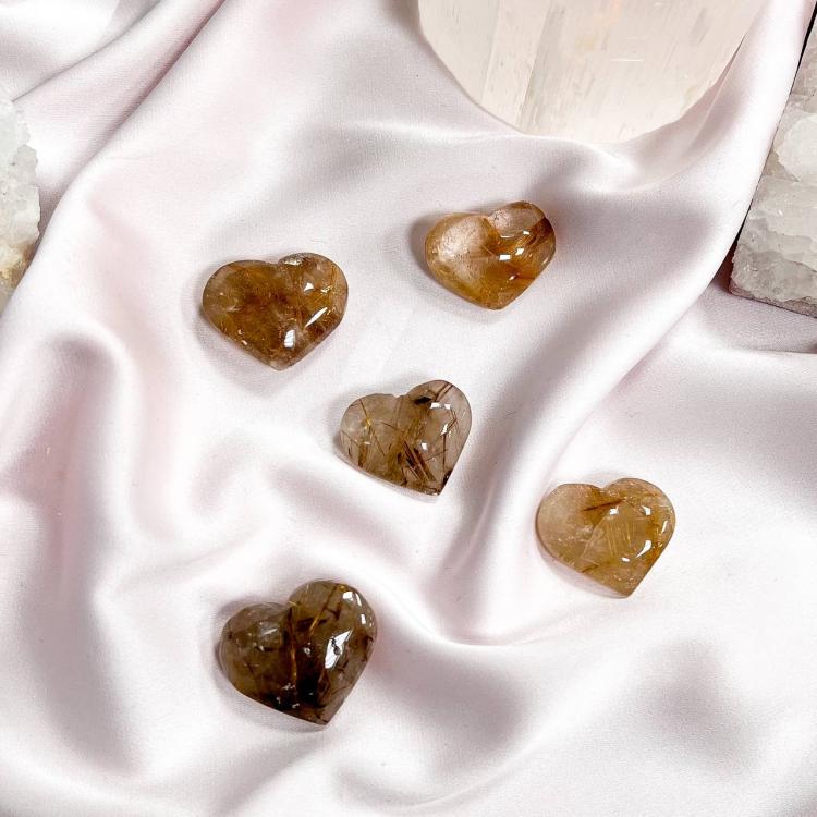 Сердце полированное из Рутилового кварца, 24х28/30х32 мм, Бразилия