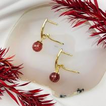 Серьги из Клубничного кварца, 8 мм, гладкий, английский замок, Бразилия