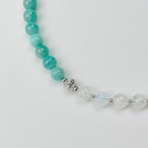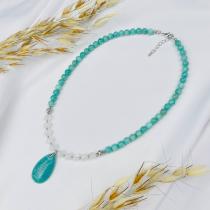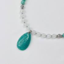 Колье из Амазонита и Лунного камня, 43 см +, 6,5 мм, гладкий, Перу